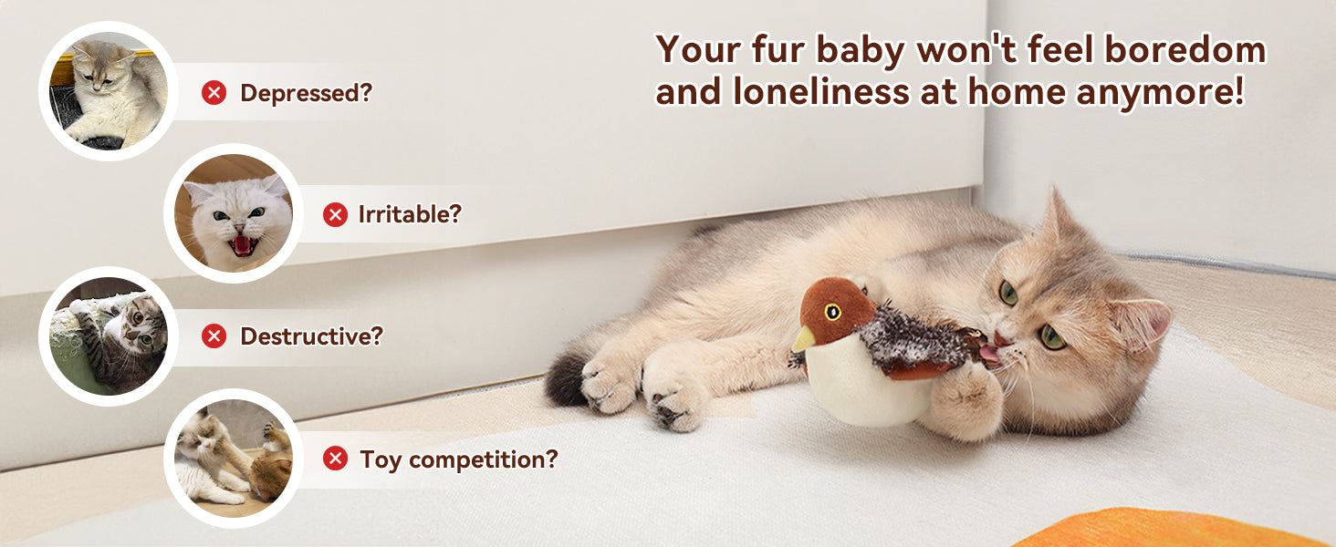 Imagine your fur baby leaping with joy, entertained for hours, and free from boredom and stress. The interactive flying bird toy isn’t just a toy – it’s a life-changer for your cat and your home!